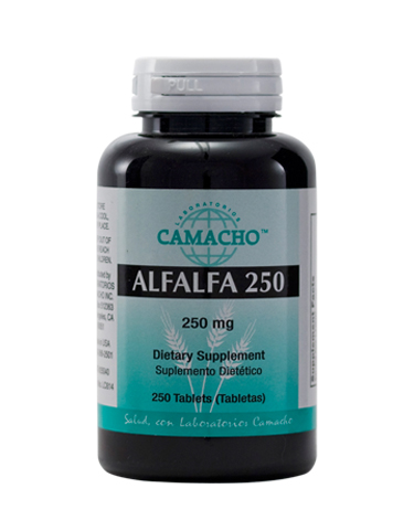 Our Alfalfa supplements used for kidney conditions, bladder and prostate conditions, and to increase urine flow. It is also effective in helping maintain healthy cholesterol levels and diabetes issues and relieves discomfort due to digestive conditions such as intestinal bleeding and irritable bowel syndrome due to it being rich in vitamin KL Alfalfa is a great source of vitamins A, C, E, and K4; and minerals calcium, potassium, phosphorous, and iron. It is a great nutritional supplement to make a regular part of your daily routine.Dosage and Use: Take one to three tablets daily, preferably with a meal. Quantity: 250 Tablets   Previene hemorragias. Digestivo. Fuente de vitamina K. Dosis: Una a tres tabletas al día con comida.